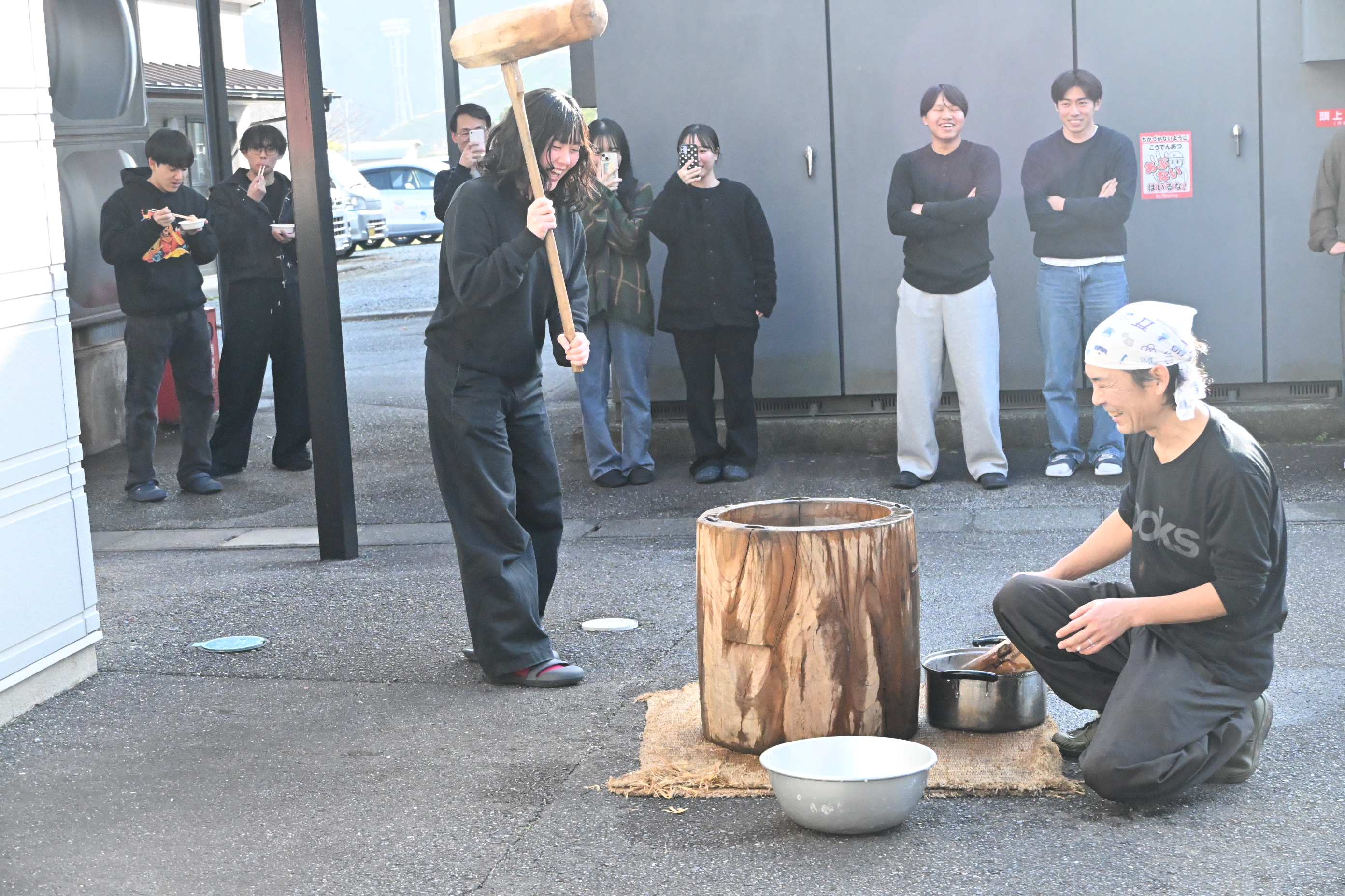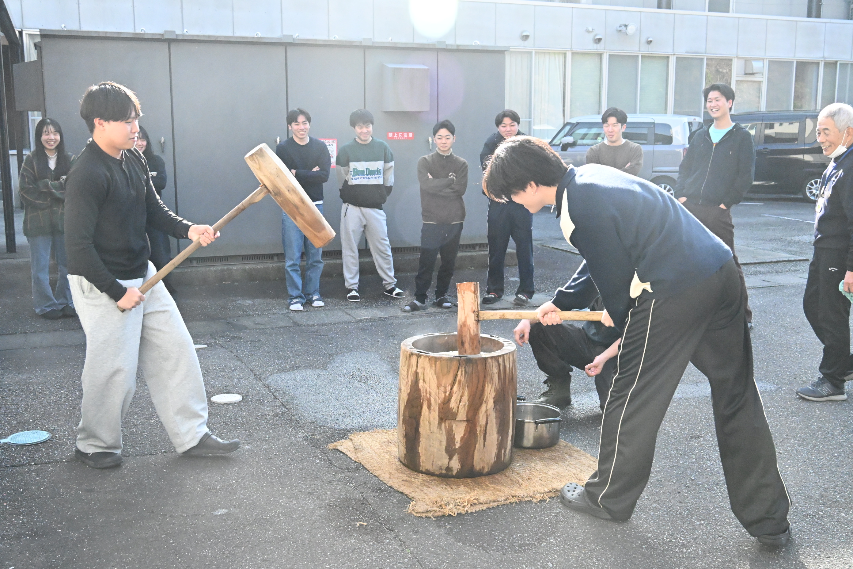1月16日(金)、本校の留学生と日本人学生との交流、地域との交流を目的に、餅つき交流会を開催しました