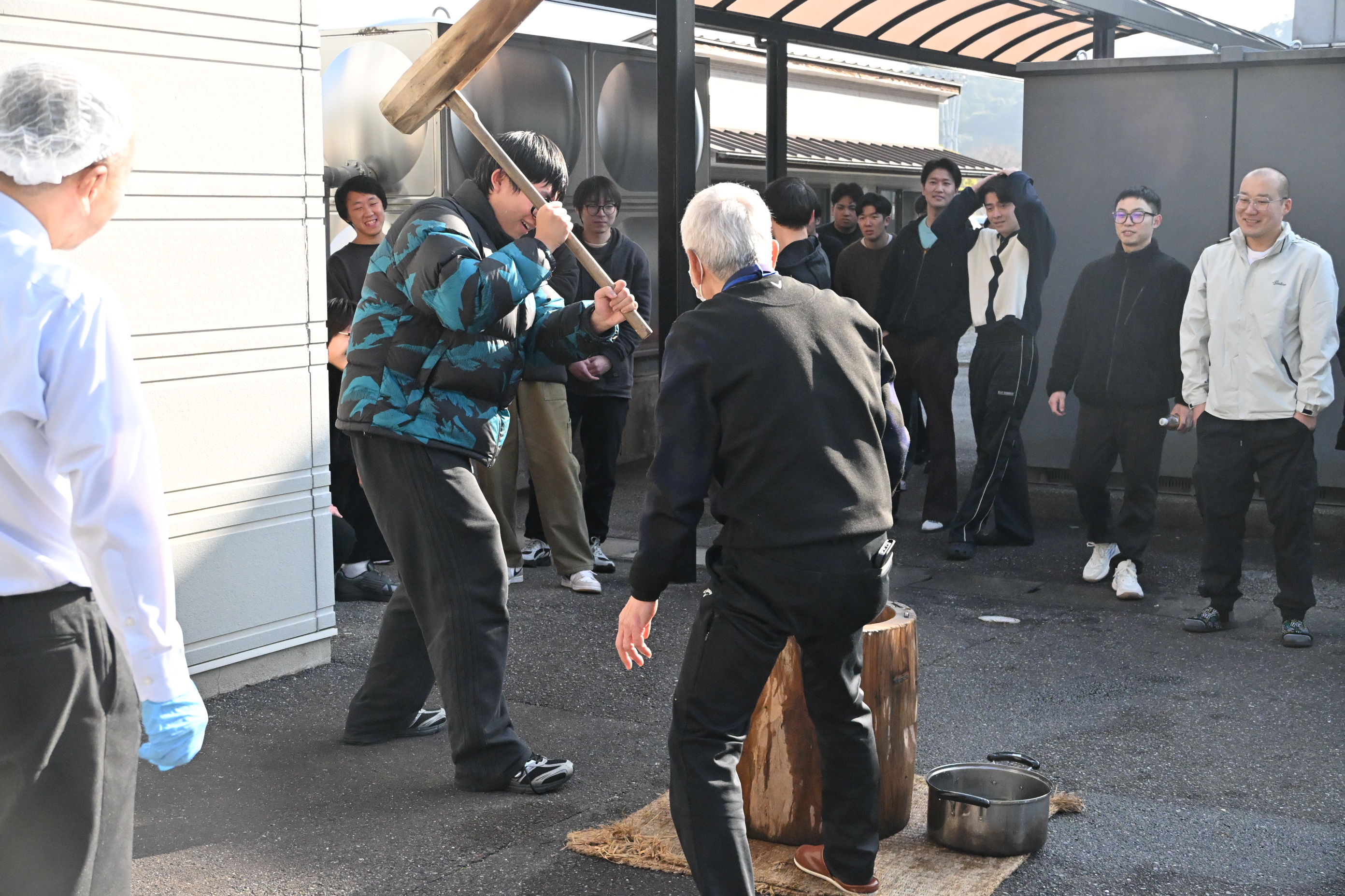 1月16日(金)、本校の留学生と日本人学生との交流、地域との交流を目的に、餅つき交流会を開催しました